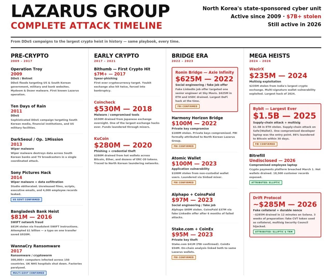 Все связанные с хакерами из КНДР атаки на криптопроекты. Источник: X.