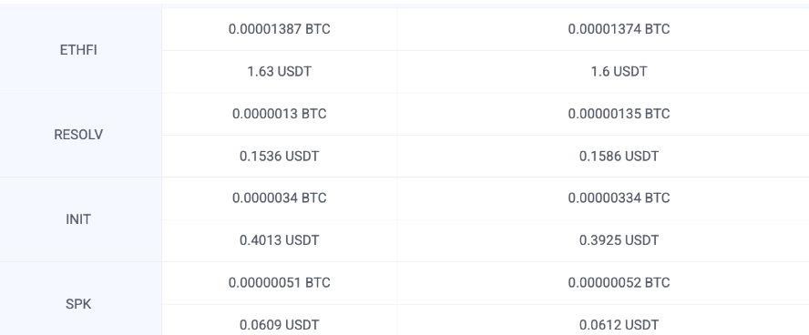 С 19 сентября на южнокорейской криптобирже Upbit начали торговаться четыре новых альткоина — ETHFI, RESOLV, INIT и SPK. Они доступны для торговли в паре со стейблкоином USDT и биткоином.