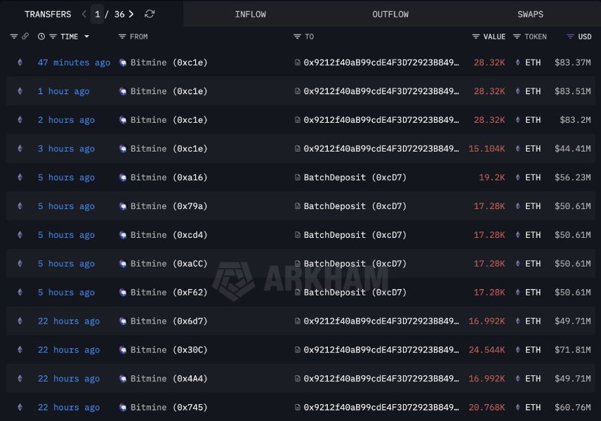 BitMine заблокировала эфириумы на $1 млрд, чтобы получить доход