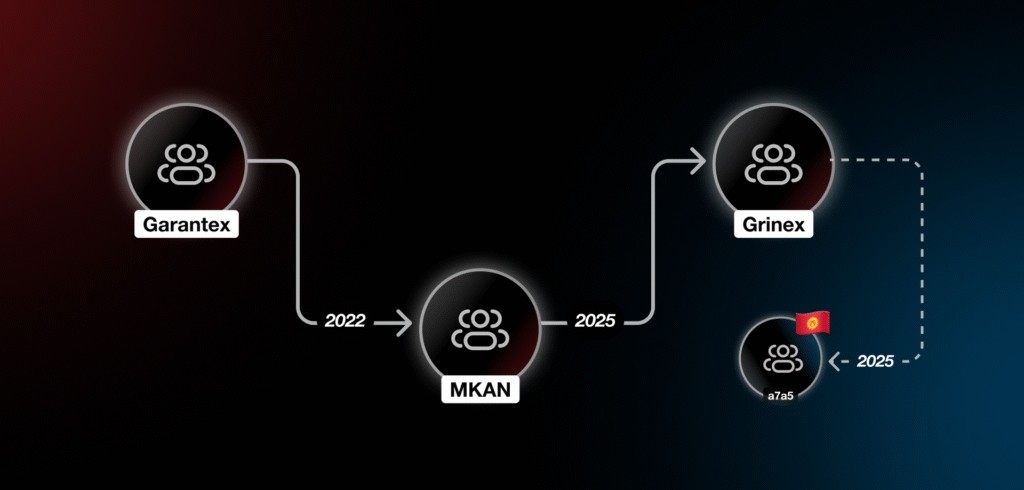 После того как в 2022 году Управление по контролю за иностранными активами Минфина США внесло Garantex в санкционный список за работу с даркнет-маркетами и вымогателями, а весной 2025 года правоохранители США фактически закрыли платформу, изъяв домен, её команда провела ребрендинг и перезапустила операции под новыми именами — Grinex, Exved, InDeFi Bank, MKAN Coin.