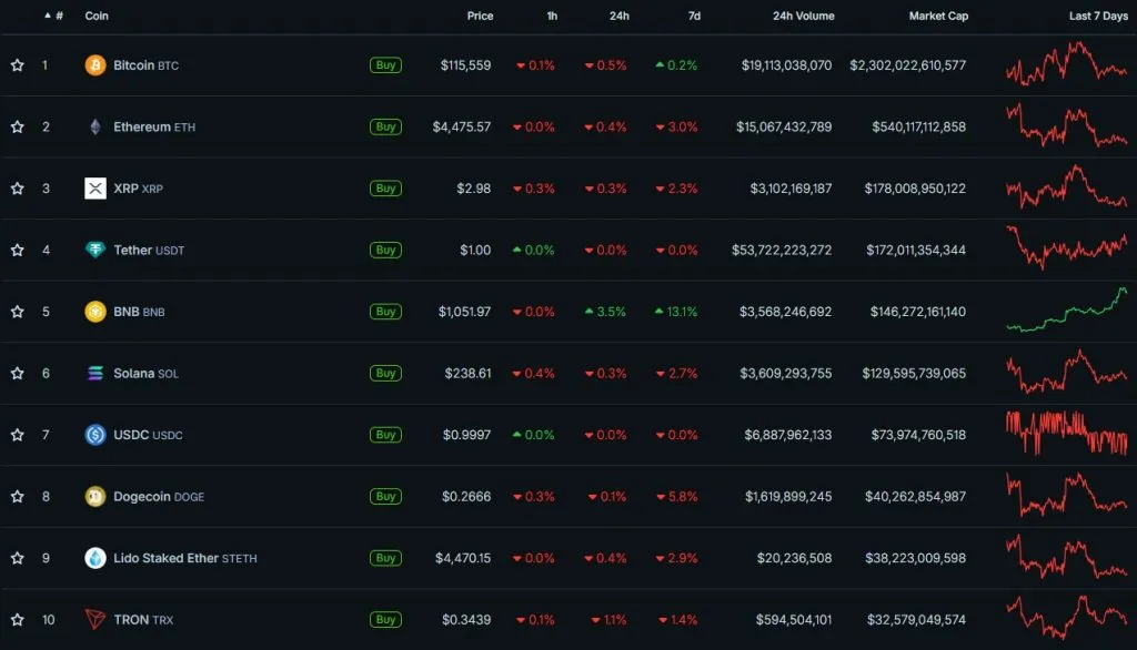 Первая криптовалюта начала неделю на отметках ниже $116 000 и завершила ее на таком же уровне.