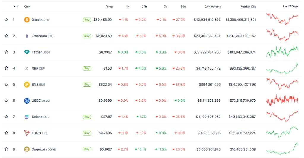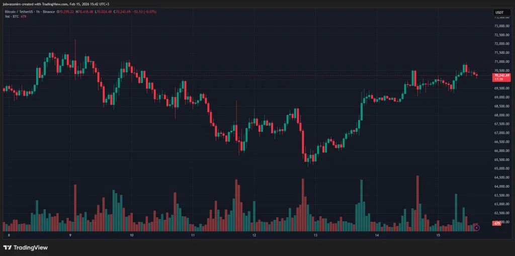 Цифровое золото продолжило рост на выходных, достигнув $70 000. На момент написания актив торгуется около $69 500.
