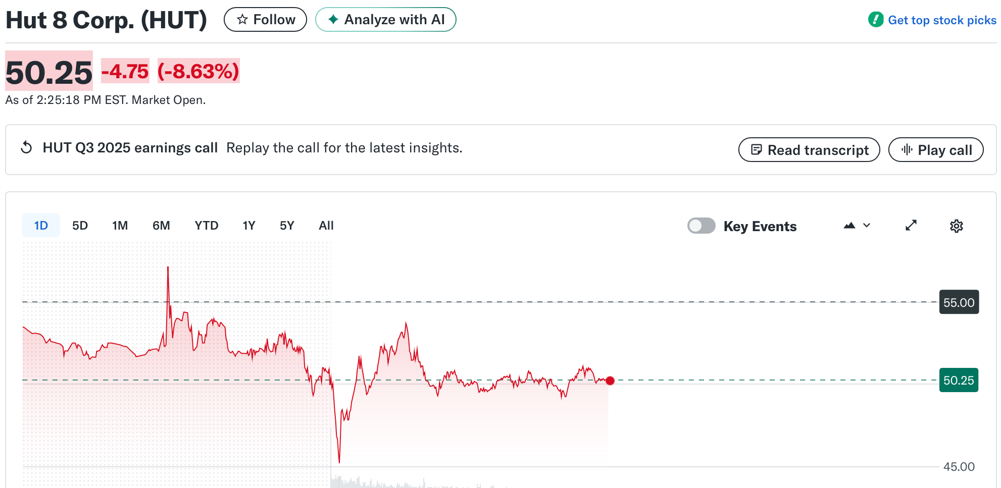 Выручка MARA выросла на 92% в годовом исчислении до $252 млн в третьем квартале 2025 года. Компания показала чистую прибыль в размере $123 млн после убытка в $125 млн за аналогичный период прошлого года. Выручка Hut 8 почти удвоилась до $83,5 млн при прибыли в $50,6 млн.