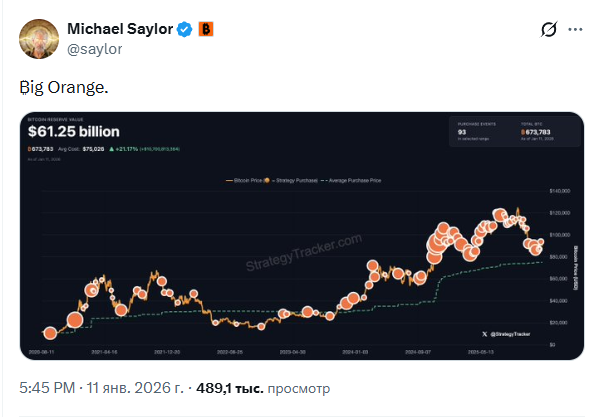 На 11 января 2026 года компания Strategy владела 673,783 BTC, стоимость которых составляет примерно $61 млрд. В пятницу 9 января акции MSTR, торгующиеся на Nasdaq, упали на 5,7%, хотя за последние пять дней их стоимость выросла на 1,7%.