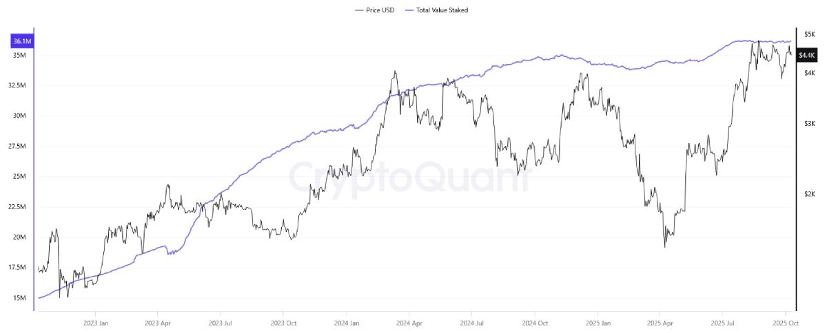 Стейкинг эфириума быстро теряет привлекательность из-за снижения доходности, вызванной ростом количества заблокированных монет.