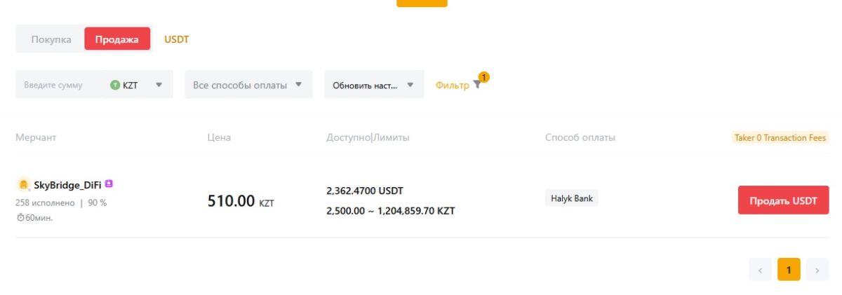 Предложение о продаже USDT на P2P-площадке Bybit Kazakhstan