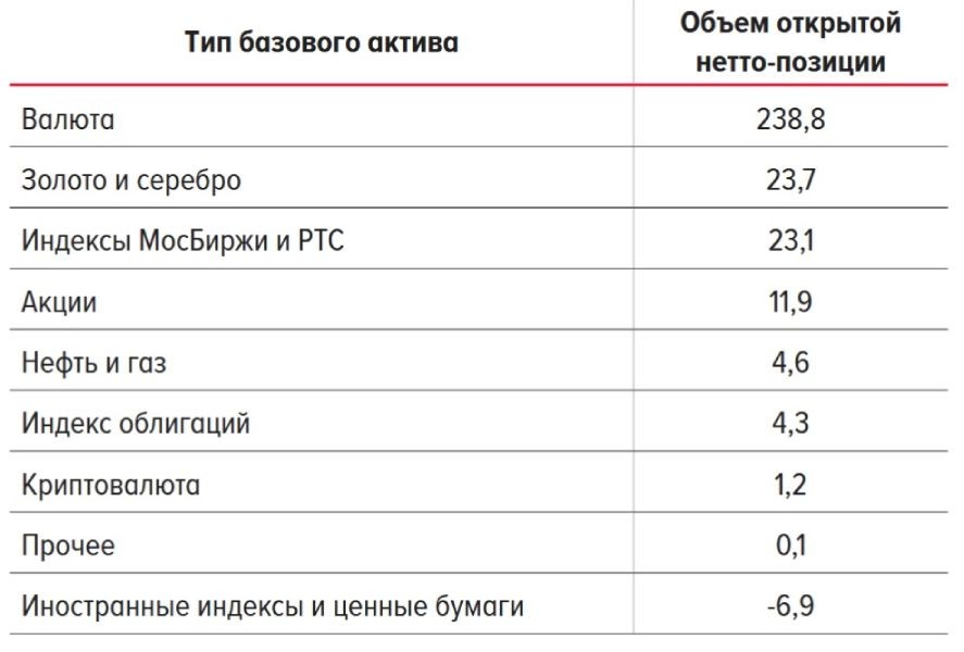 В Банке России также отметили, что фьючерсы в целом не относятся к востребованным инвестиционным инструментам, так как в них вкладывают деньги менее 1% инвесторов. Наибольший интерес россиян привлекают фьючерсы на иностранную валюту, на которые открыли позиции на сумму ₽238,8 млрд. На второй и третьей строчках с большим отрывом идут фьючерсы на драгоценные металлы и индексы российских бирж.